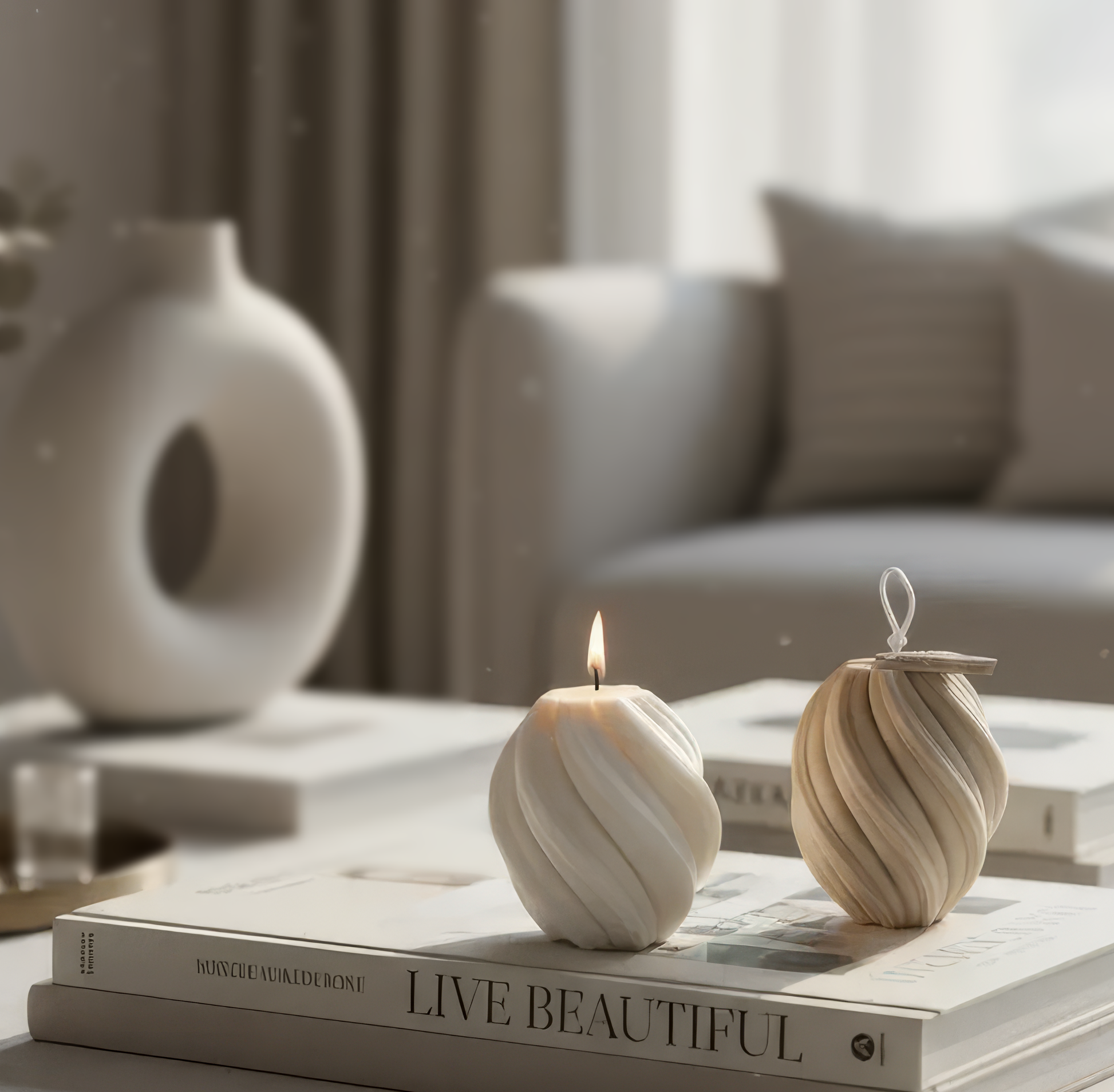 Sanatsal tasarım ve sıcak ambiyans sevenler için heykelsi bir ifade parçası. Londra'da %100 doğal soya mumu ile elde dökülen bu girdap şeklindeki mum, biçim ve işlevi birleştirerek her odada büyüleyici bir odak noktası oluşturuyor.